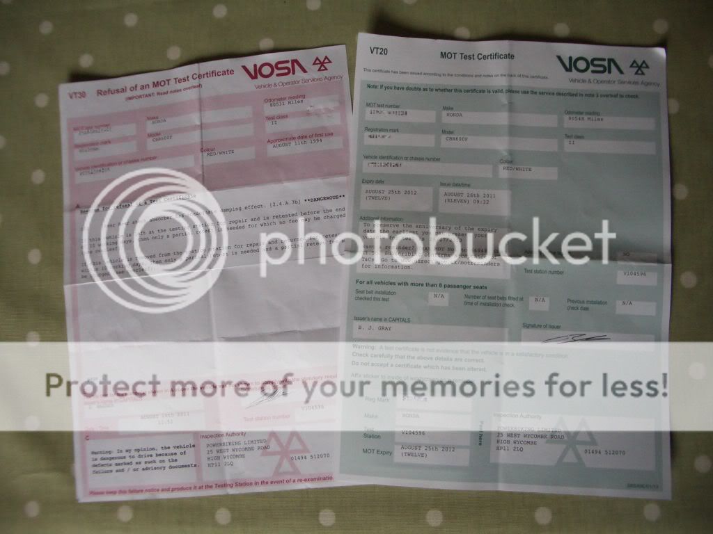 Took the CBR for an MOT yesterday and, as predicted, it failed on the complete lack of damping from the rear shock. Everything else was fine apparently.