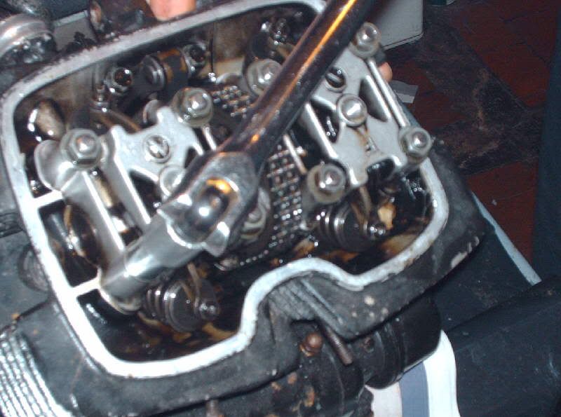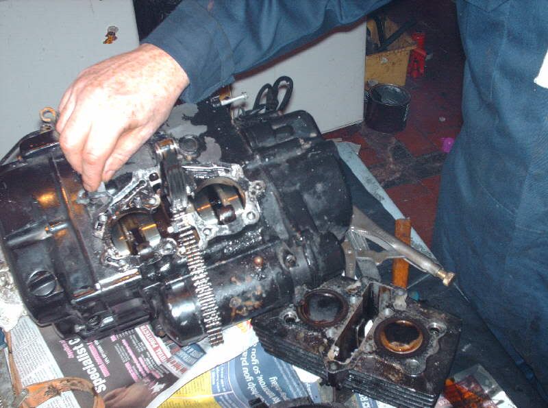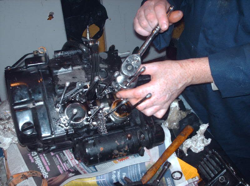 Then the rocker assemblies can be removed to expose the camshaft, and the cam chain sprocket loosened off.