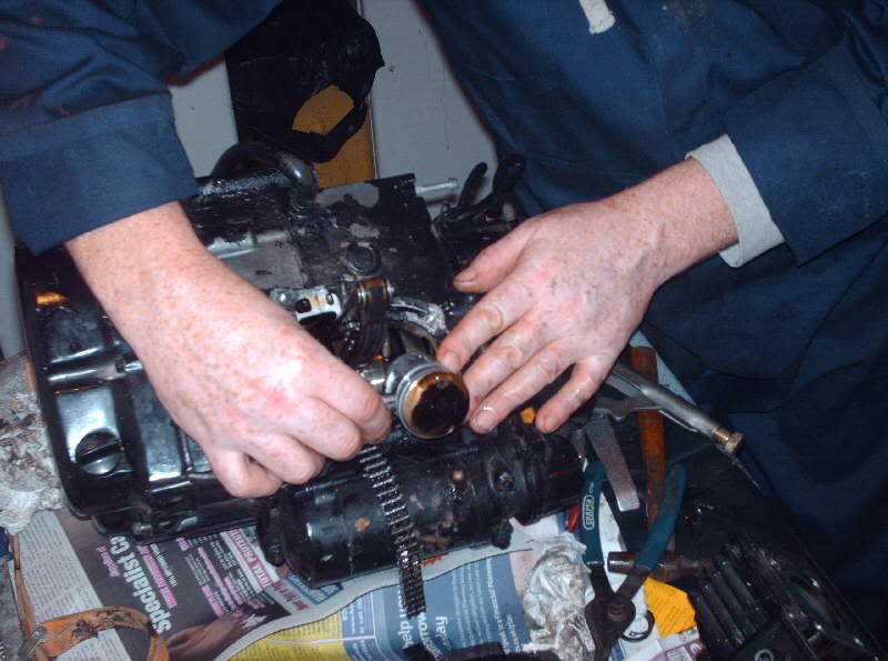 Recycled photo or 'removing' the cam chain, because I forgot to take one putting it back on! Likewise refitting the cam chain sprocket! ALL after the idgery nadgery job of timing the cam in!