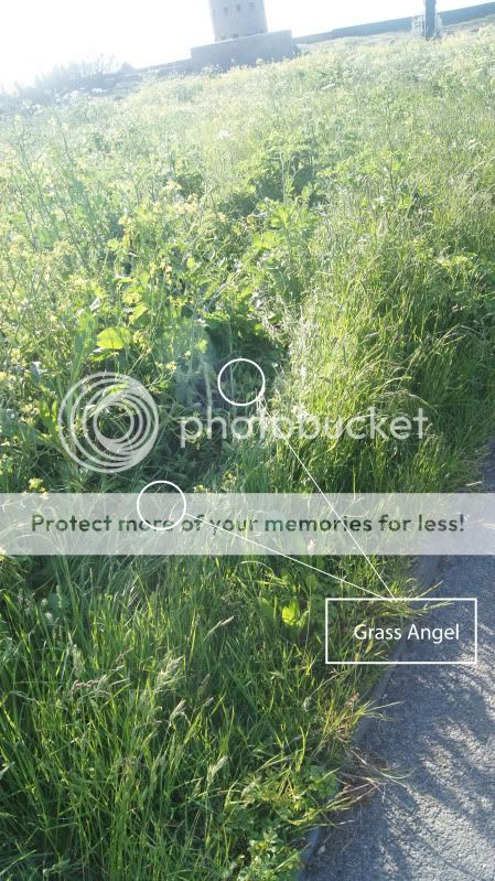 My son came off his scooter today, mostly unhurt except for pride, hit a kerb, got thrown off immediately into grass and weeds, where he landed on his back, did a reverse roll making a 'foliage angel'.