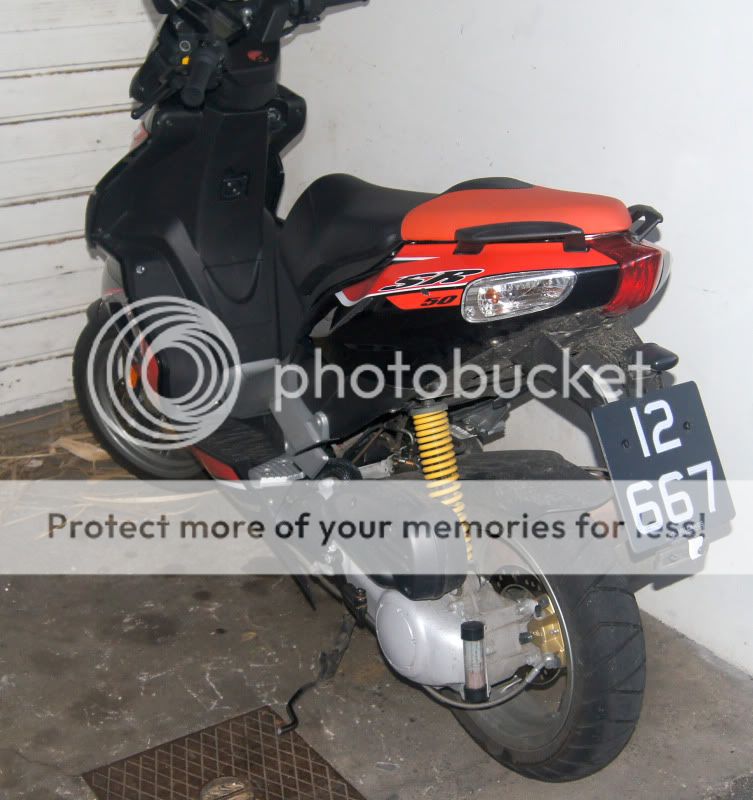 Friday - my 14-year-old daughter was hit by a car (driven by another of my students) on a filter-in-turn, she's fine, thank goodness, apart from a bruised backside but her brand-new, month-old Derbi GPR50 is a write-off, scrapes on every panel and cracked frame behind footrest.