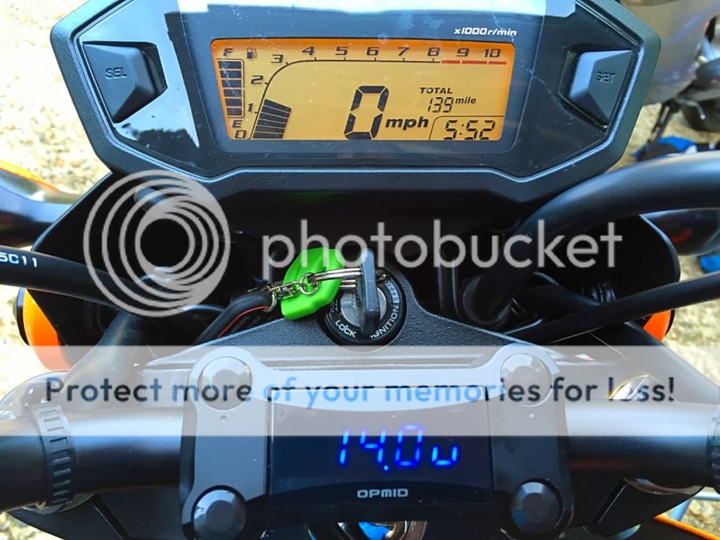 The little display is an OpMid. It goes on in place of the bar clamps and shows Volts and Oil Temperature.