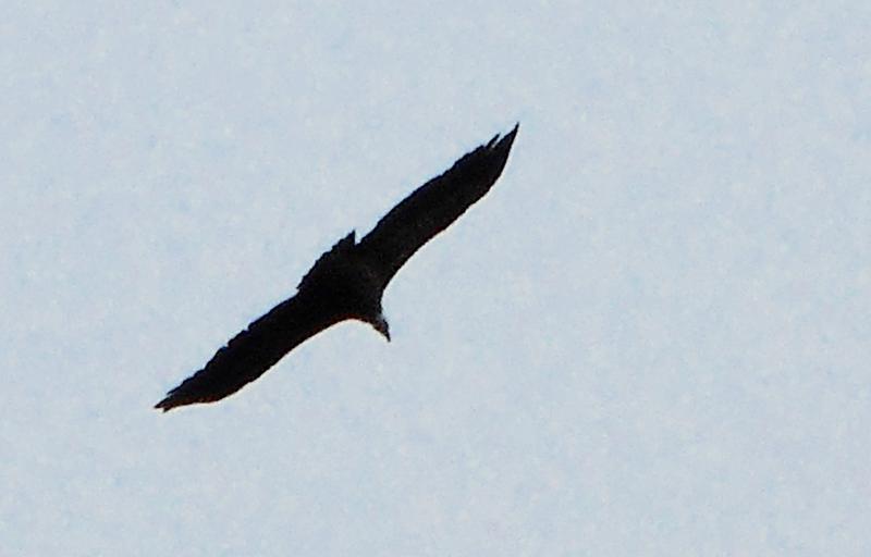 Fag break at the top of the pass on the way back, three vultures circling lazily on non-existent thermals. Best I could do with my camera - this is on full zoom, and the light was crap: