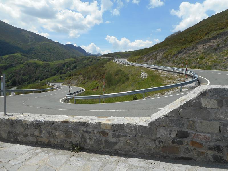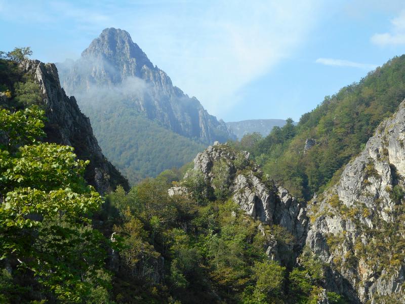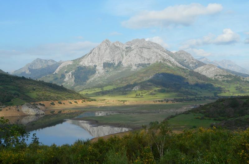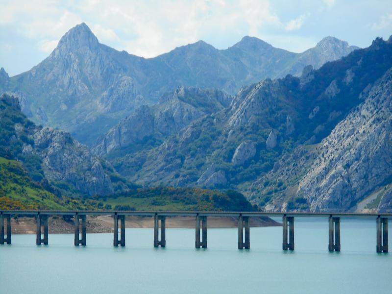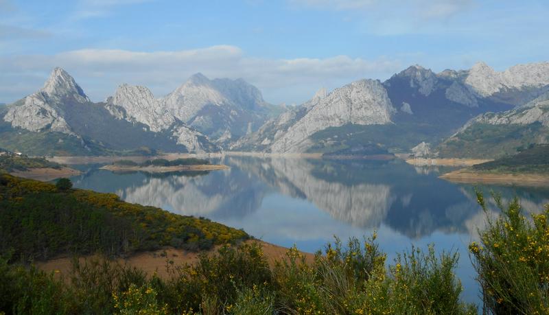 At a place called Unquera, after stopping for coffee and a snack, it was time to head inland for the Picos, and within about 2 miles, the sky suddenly cleared, and the temperature started to rise. The beginning of the fantastic scenery came almost immediately then, heading through a deep gorge with high cliffs and peaks on both sides.
