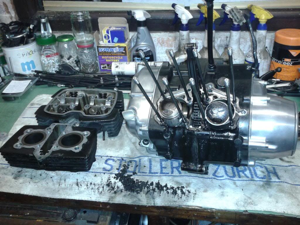 As matter of course, 'now', I cut to the chase; I pull the motor and tear-down. A Chinese barrel kit, with new rings and gaskets is chaper than a rebore, at last look aprox £120. Head comes off and gets stipped; valves get lapped in, and new stem seals fitted. Then it goes back together on the Chnky barel, attension payed to the cam and cam bearings, rockers and state of the likely chewed up tappets. Cam gets critically timed in on rebuld, and hint the Chinky replacements are crap... cap bearings are worth the swap though. A-N-D the top-tip, IF the cam-chain loops onto the sprocket easily, and you dont have trouble timing it in... then the cam-chains likely fcuked!