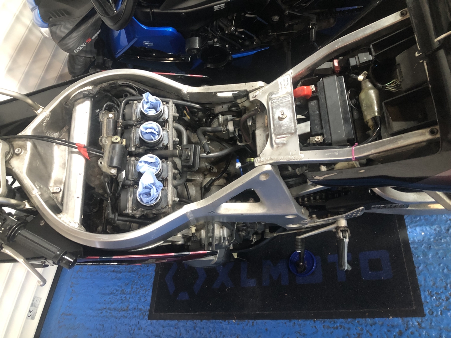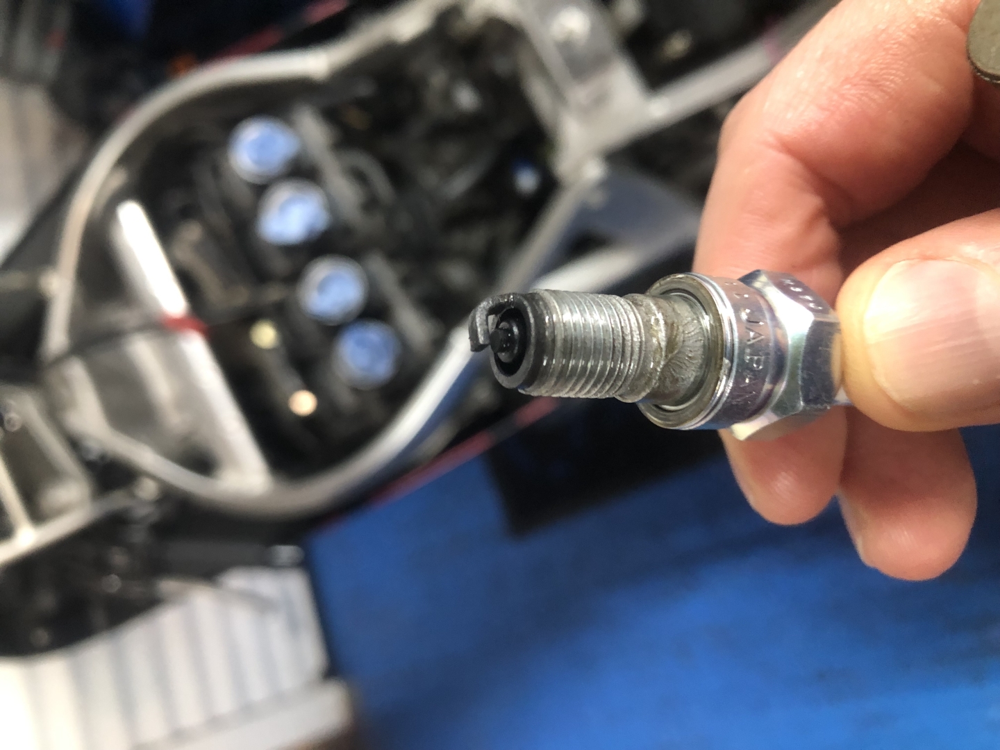 I ordered some new plugs (which aren't cheap!) and in advance of that, I decided to dismantle the bike to get to the plugs. I took the tank off, I took the airbox lid off, I took the airbox base off, and there is a weird heat shield between the head and the airbox that was a faff to remove. Once I did, I then tried to remove one of the plugs. Turns out my plug spanner was too fat to fit into the head. Again I searched forums and found the only tool you can use is the one from the bike's bundled toolkit. Which I don't have. Damn.