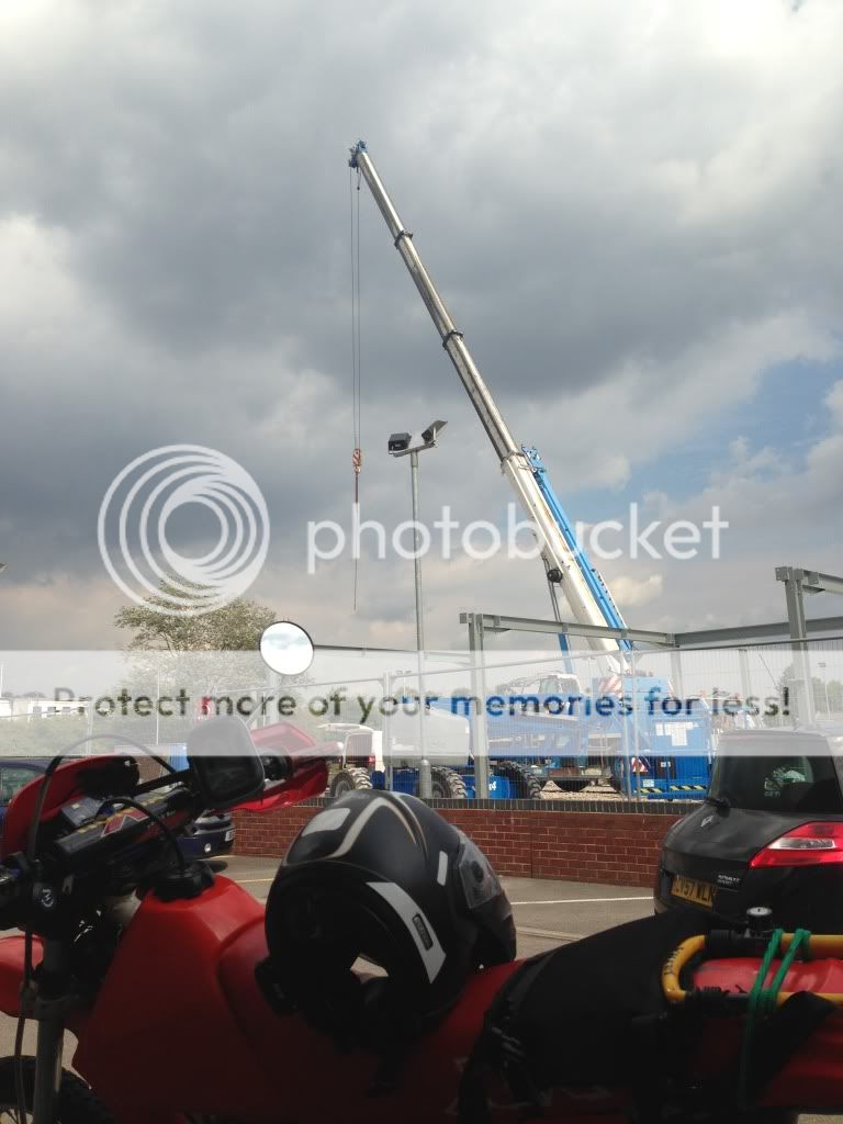 Next challenge is: your bike next to a mobile crane(must have wheels), bonus if its lifting something at the time. |