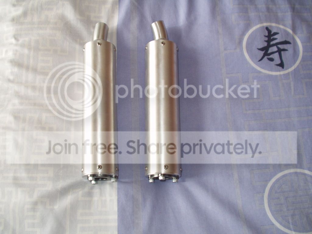 I'll have to have some spacers made up as the new cans are a lot smaller in, overall, diameter than the originals and there's not enough room to drill new holes in the pipes.