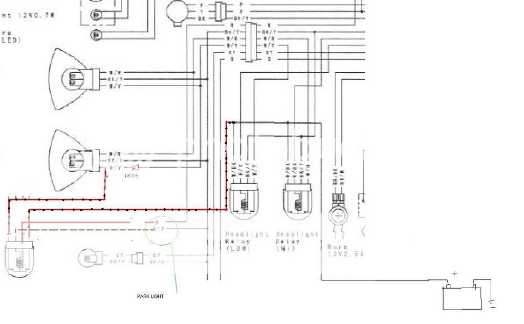 Is there any way to play with the electrics of my 2000 zx6r and have only 1 light on instead of 2. When i put the first setting on the switch gear only a small light in the middle comes on, is it possible to wire one of the headlights to come on too like the cbr600rr's