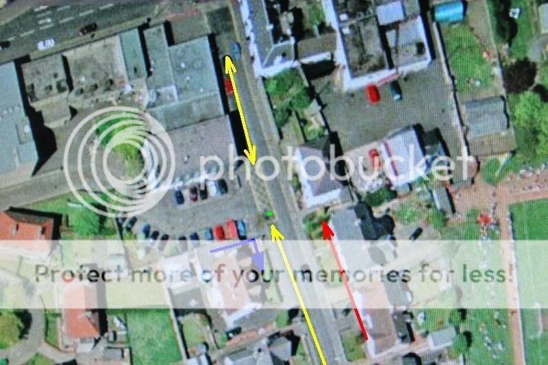 I stopped my bike where the green dot is and waited expecting the woman to see me (her car was gently rolling forwards) however, she was looking left and not at me.
