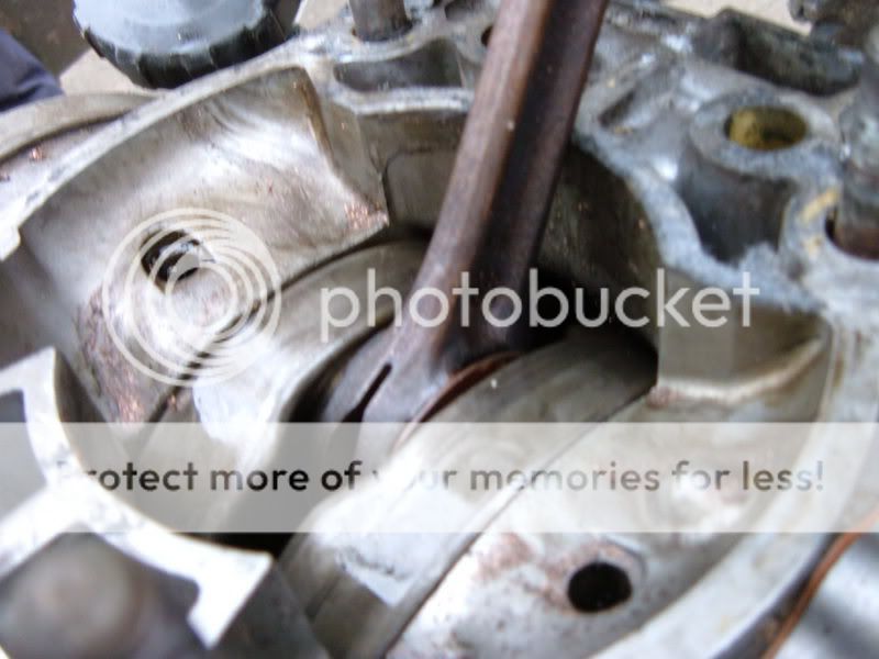 just whipped top end off and engine is fuxxord Sad looks like big ends gone and also some chips out of piston, the big end just wobbles about when you shake the con rod and all theh little roller bearings near enough fall out lol propper fucked the big end BUT somehow the barrel has survived it theres no damage to it like scores,grooves e.tc its all good thank god lol ,so guess its an engine out jobby gonna have to get a con rod kit,piston kit,full gasket set,prob do main bearings and replace the seals aswell but hopefull once its done it will be a good fun bike and reliable so not bothered that its fucked really lol just all next months wages are going on fixing it Smile
