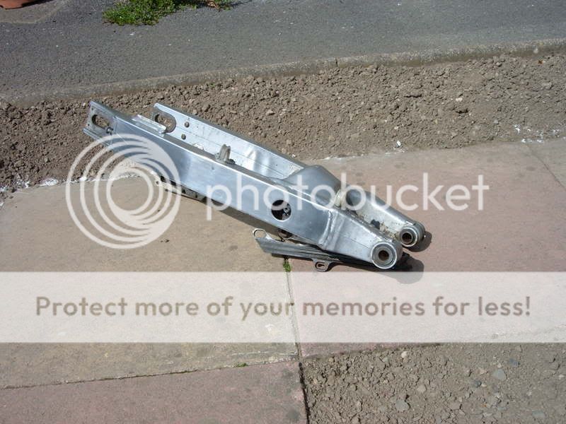 well took swingarm off last night to start scrubbing it down and polishing it up so its chrome 8) started off using 120 wet and dry then whent through all the grades upto 800 then used some rubbing compund then autosol to finish it off took ages and my arms are killing but looks so much better now Smile i forgot to take some before pics Rolling Eyes but ive put a pic of the bike when the swingarm was normal just plain dull so heres the pics of it looks even better in person let me know what you think cheers Smile