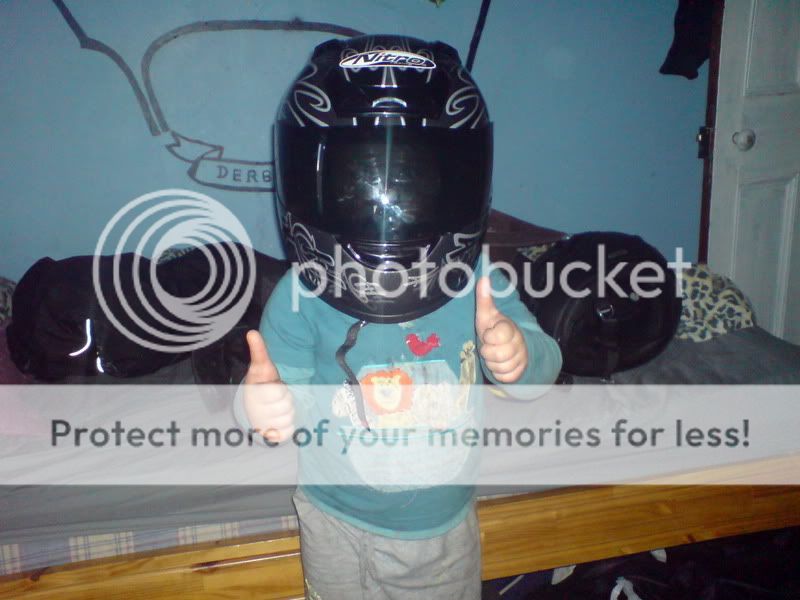 Josh oftern walks around in my old lid, sometimes the boots aswell. He loves bikes.
