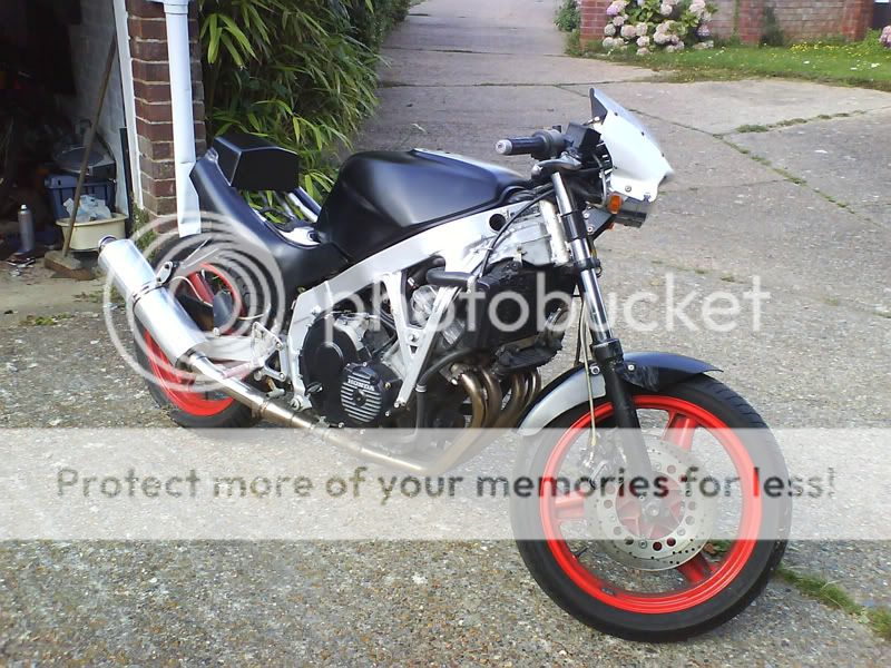 Also, if you get into some spare cash, why not get a nice '89 (or whatever years that model went on for) cbr600f and put the system and other nice bits onto that?