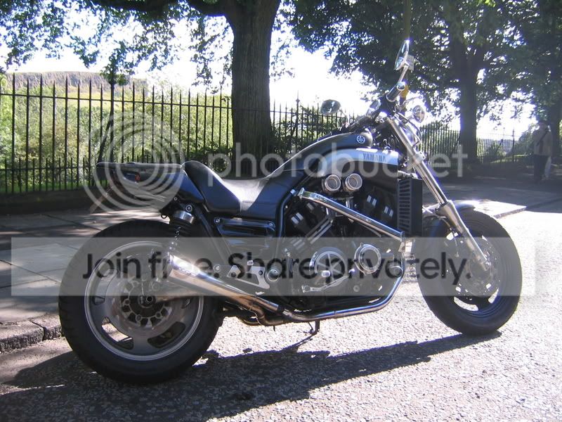 Now here's my Vmax. I don't regard my 'max as a street fighter (yet). Yeah its got a sporty tail, different size rear wheel, a tarty clear water pump cover, and it now has a braced swingarm... but these are just performance and tarty bits. My gsxr is a fighter...or the home of a rats nest (the wiring).