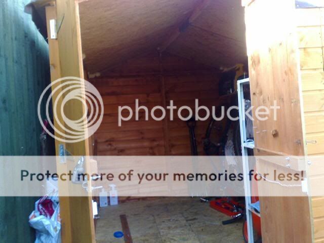 Here is my hastily built 8x6 shed that my bike lives in, can just about work on it in there at a squeeze.