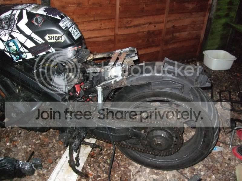 With the subframe braced I hacked off the bit I did'nt want, this will become detatchable the rear rack/seat.
