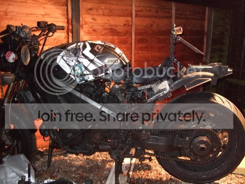 OK so I had a last minute change of plan, if you're thinking you've seen the rusty chain sissy bar and gaffertape seat before that's because they're off my CB250RS which I had to dismantle recently for various reasons , was'nt going to use them but I held them up and they fitted perfectly and looked great so I figured I'd go for that look again as I loved that style before
