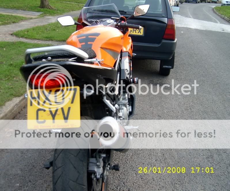 yeah i did that and spell checked because it keeps coming up with those bloody warning messages about karma!! but i didnt realise that having an embedded item was disabled but i know now so ill just use a link instead for future links the bike may be up for sale in a couple of months, im undecided yet, im interested in a 675 or cbr 600rr ____________________ HYOSUNG GT650R, SCORPION TITANIUM CAN, REAR HUGGER, 14 TOOTH FRONT SPROCKET, HEL PERFORMANCE LINES, CRASH BUNGS, DB SCREEN, SINGLE SEAT COWL  |