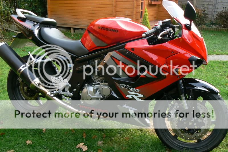 HYOSUNG GT650R, SCORPION TITANIUM CAN, REAR HUGGER, 14 TOOTH FRONT SPROCKET, HEL PERFORMANCE LINES, CRASH BUNGS, DB SCREEN, SINGLE SEAT COWL Wink