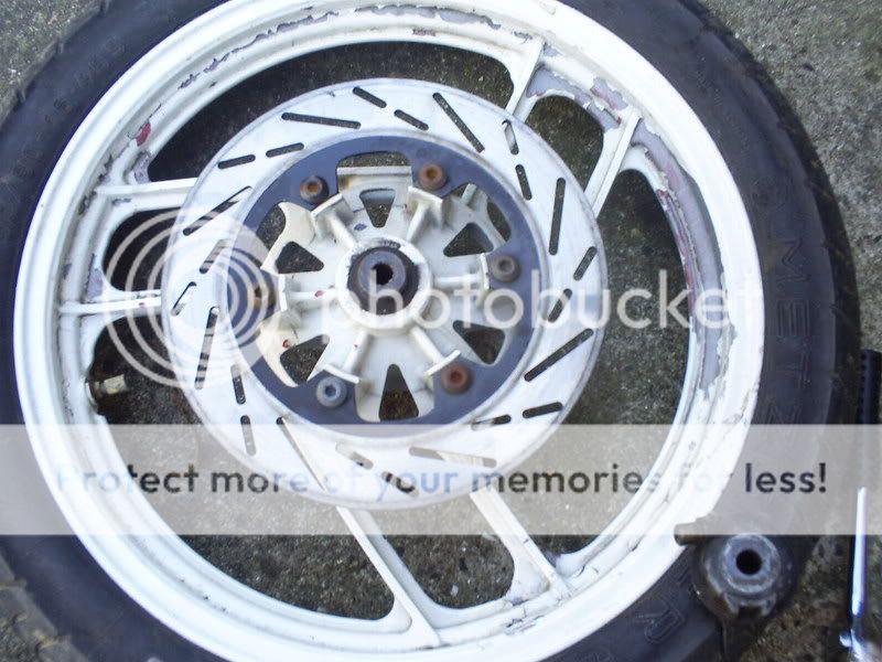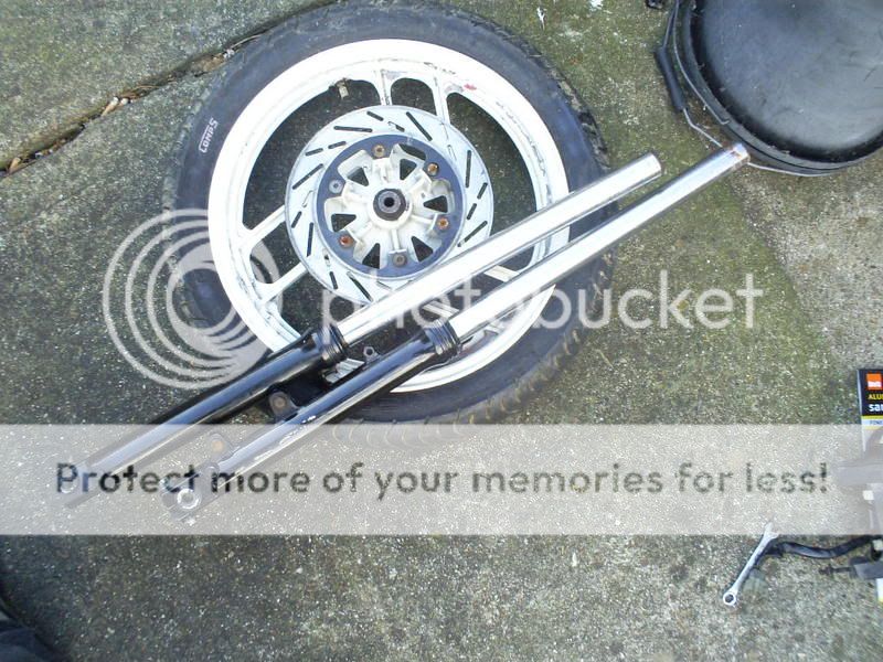 I needed to fit a new speedo drive I ordered, and get the fork seals done so I set about taking the forks off. The wheel took me ages as the pinch bolt is really confusing lol. The wheels I want to get resprayed and cleaned up anyway as the paint is all flaking off.