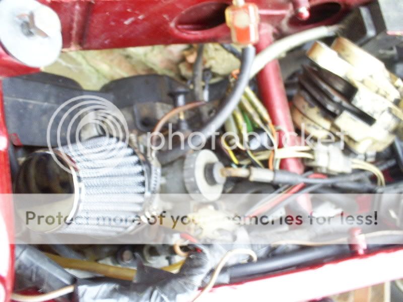 I went to clean out my air filter while it was off, to find the lack of filter in the air box! My carbs may need cleaning if a bunch of dirt and shit has got into them.