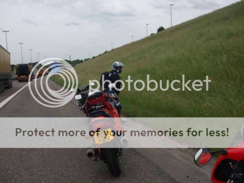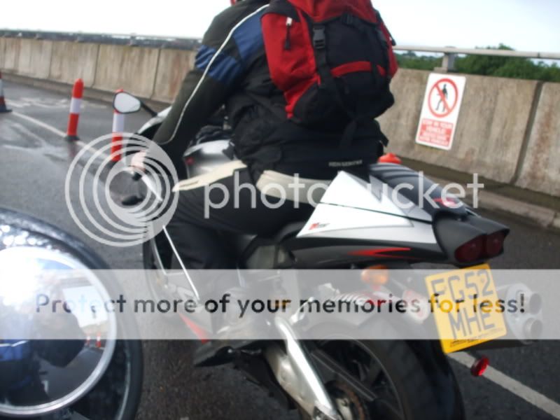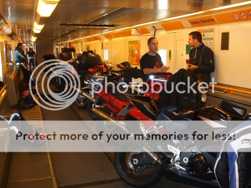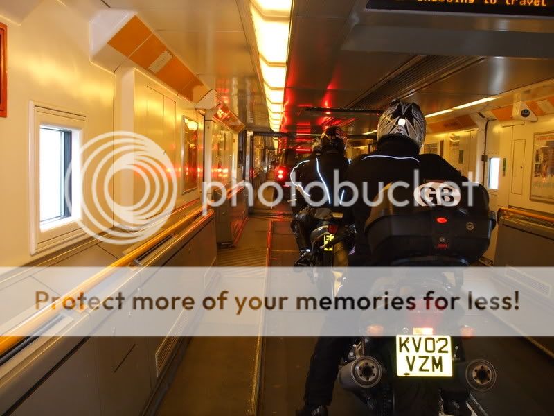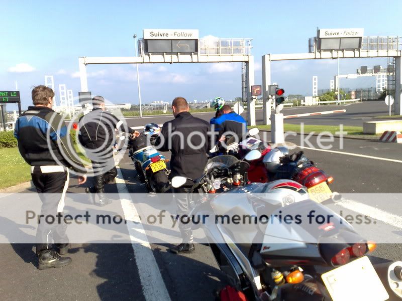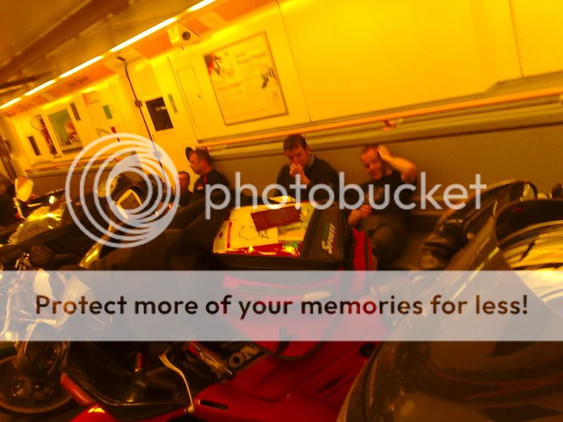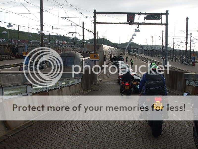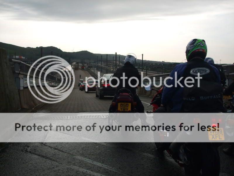 Me and 6 other people headed off to the ring on wednesday at about 3:30 am, in Milton keynes it was absolutley pissing it down as i opened the shed to get my bike out so i was not looking forward to going on my bike to the eurotunnel. Met one of the others at junction 14 of the m1 and by that time my gloves were already totally soaked and weighed about 2 kilos each.