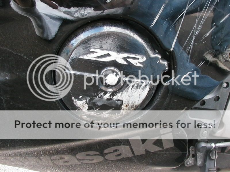 Left hand side i think is the generator cover. Please don't say that you RODE your bike after that! Or even attempted to start it up? . There's plenty of ZXR400 engines being sold for spares so a cover should be about 20-40 quid for second hand one.