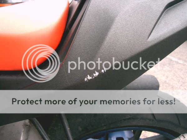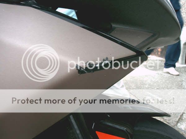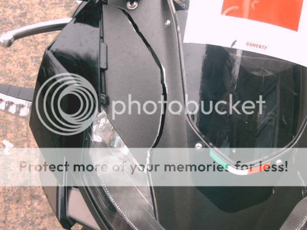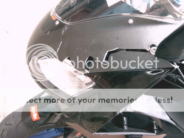 The bike is still rideable and i didnt shout at her i just said she should of been looking where she was going etc. i didnt give her an earful badly i think you all took that the wrong way and yes i think they might write it off as the bike is £2885 brand new from the shop so its over half the price of the bike just to repair some panels, ive duck-taped the front ones to hold them on for the time being and i still ride it around just fine