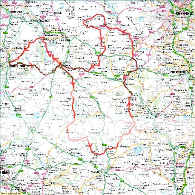 stood round and had a chat and hoped the weather would get better but no chance so all headed off, i'll post a picture of the route but if you look at it we only did the right hand loop as everyone was soaked after 100 miles