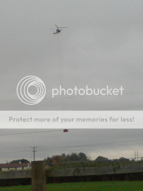 Eon have been doing some work on the pylons next to where I work. Today they tuned up with a helicopter. To do this.