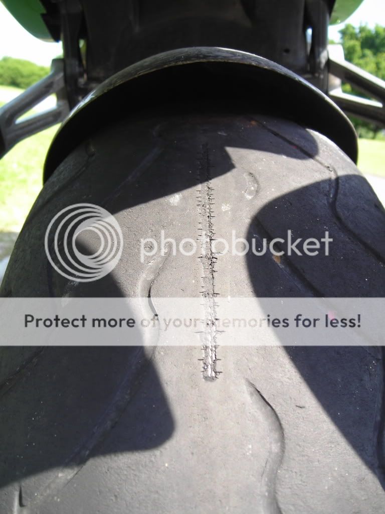Yes, kawasaki and dunlop Titsmarts (roadsmarts) will see you doing silly miles and silly weekend blasts. For such a heavy and planted bike (like most mid 90's kwaka's are) the tyres promote neutral, stable handling. If that's your cup of tea, they're cheaper than 2CTs (which won't last as long for commuting) or Pilot road 2's, which i've been told are very good and positive steering. I've had a comparison of chicken strips of similar ZX6R's (mine and southeastpetes) and it shows the amount of confidence that you can put on sports touring tyres, bearing in mind that we did a lot of commuting miles. I've had 1400 miles out of mine so far and barely look scrubbed in! Roadsmarts are 20 quid cheaper per pair on the whole than PR2's, i've not tried pirellis because i'm not a pirelli man - they're pretty agile but found that the diablos on my mates ZXR400 were too twitchy. I'm more of a dunlop lad.