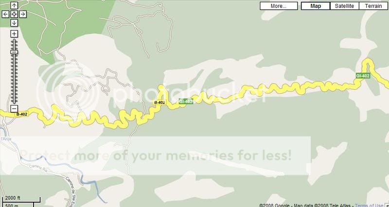 The route I took back, I know, for the folk who have been there, encompassed the GI-402 & b-402 with the more well known N-152 as well. These are all marked down on the gps so when I get back to London, I'll update it with the exact roads. At one point it was 1888m up and I was 100% sure I was lost. It was cold, there was mist everywhere and I could hardly see a thing. By the state of the roads that I was on, I had the thought of dieing from hypothermia at the back of my mind. I hadn't seen another car for at least 50+ miles! But 5 miles later, I'm going back down the otherside and the sun breaks through and everything is fine and dandy - what a superb experience. I regret not taking a proper digital camera with me as the landscapes in this area are outstanding. Okay, I had plenty of it living in Scotland most of my life but this was easily as impressive if not more so.