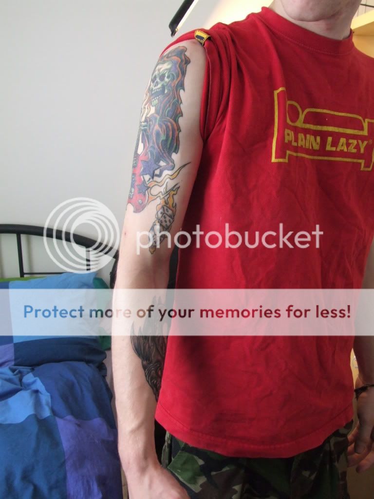 Was out in Kos for a month, stuck with the blue-collar daily star 'readers', and dear god did I get some stick for my tat. Coming from people plastered in tribal, archangels (ala robbie william's back) and arse antlers