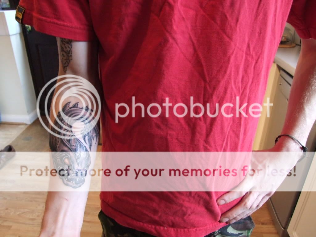 I have seen a few nut heads with heavy tribal, but I just can't help liking it! It does hurt, but mine is all the narrow stuff so it doesn't take too long to do, it's the inch wide stuff that properly rags apparantly. ____________________ "THOSE WHO RISK NOTHING, DO NOTHING, ACHIEVE NOTHING, BECOME NOTHING." |