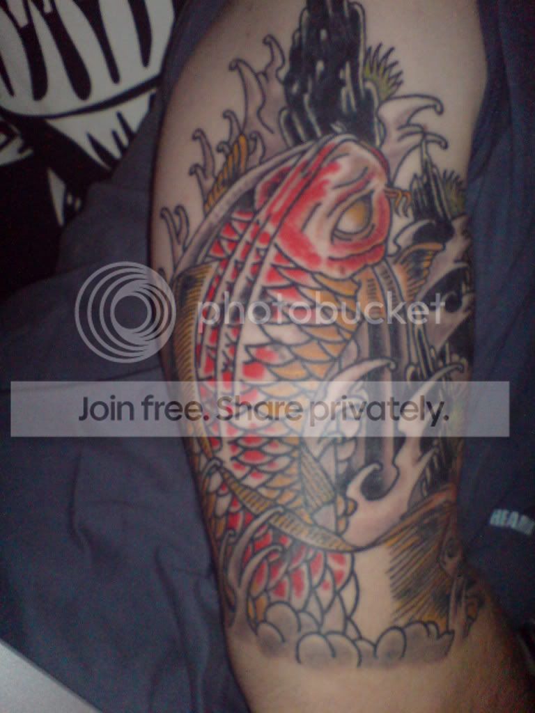 Contemplating turning into a half sleeve. Mum has named it Keith the koi!