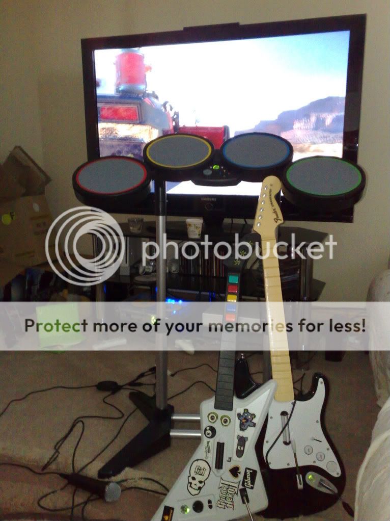 Nice setup, I've only got GH but my neighbor has rockband so I'm pretty good at it.
