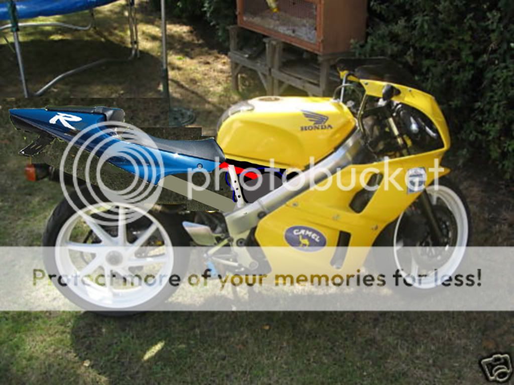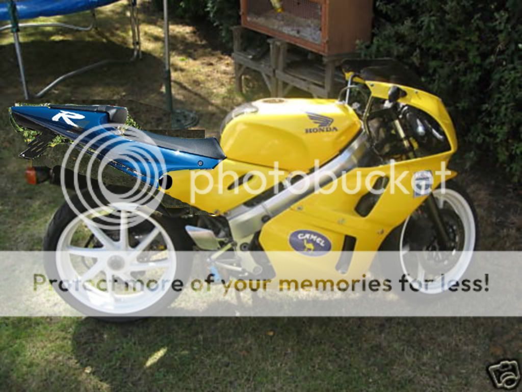 Have to say, I'm not taken with it right now, maybe you could spray it yellow to match the rest of the bike, then maybe it will fit in a bit better. Good luck with it though mate  ____________________ '84 TS50X, '91 TZR125, '89 CBR400RR, '91 VFR400R NC30, '98 R1