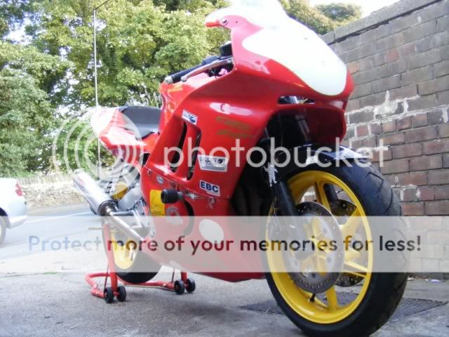 It's a 92 Steel Frame (not 91 like I said earlier, it's just the 91-94 model), cost me £720, which was my maximum price I bid on eBay Laughing Came with another set of wheels with discs and wets, a spare front wet tyre, and another set of clip ons.