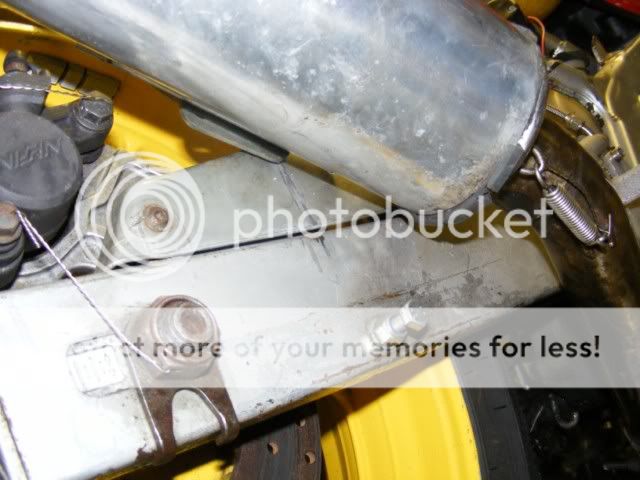 Next on the list, either bend the exhaust hanger bracket, or add some spacers to stop the exhaust touching the hugger and swing arm: