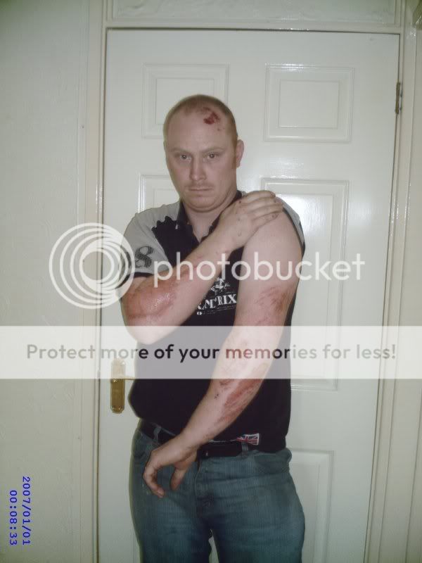 Ouch. Shows why gear is good though... were you not wearing a helmet?  ____________________ Full licence from 16/4/08