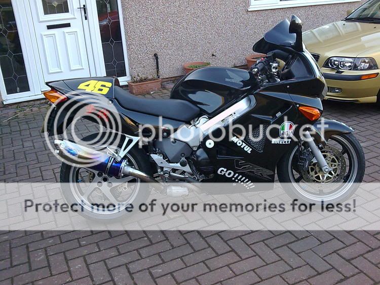 | the advert wrote: | this bike has been my pride and joy , vfr 800 on a 99 t plate , this bike has a service history like you have never seen , its just had a full one , long tax and test , data tool alarm with 3 fobs crash mushrooms , heated grips , built in 12v power point for sat nav and charging your mobile aty the same time , double bubble screen , bilett vfr bar ends , blue flame can , scott oiler , carbon yoke cover , solo seat plus honda rack , rossi graphics , i have a set of bar raisers to go with it very easy to fit , it has a built in trickle mate for the battery , i manual on cd , i have the standard screen , good rubber , starts on the button runs and sounds a dream , zx 1 added at last service , it is an import so clocks in kph with mph stickers on , its done 130 k but you wont know it , these bikes will do double that , been to the nurburg ring twice , its been a joy to own |