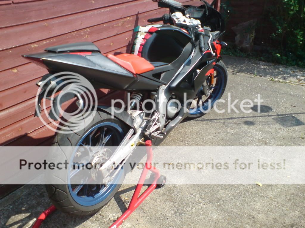 Look forward to seeing you sort it out mate. If funds allow... Please get the wheels sprayed lol. Really have no idea why Aprilia made a red and black bike then put blue wheels on it. Should look good in Black?