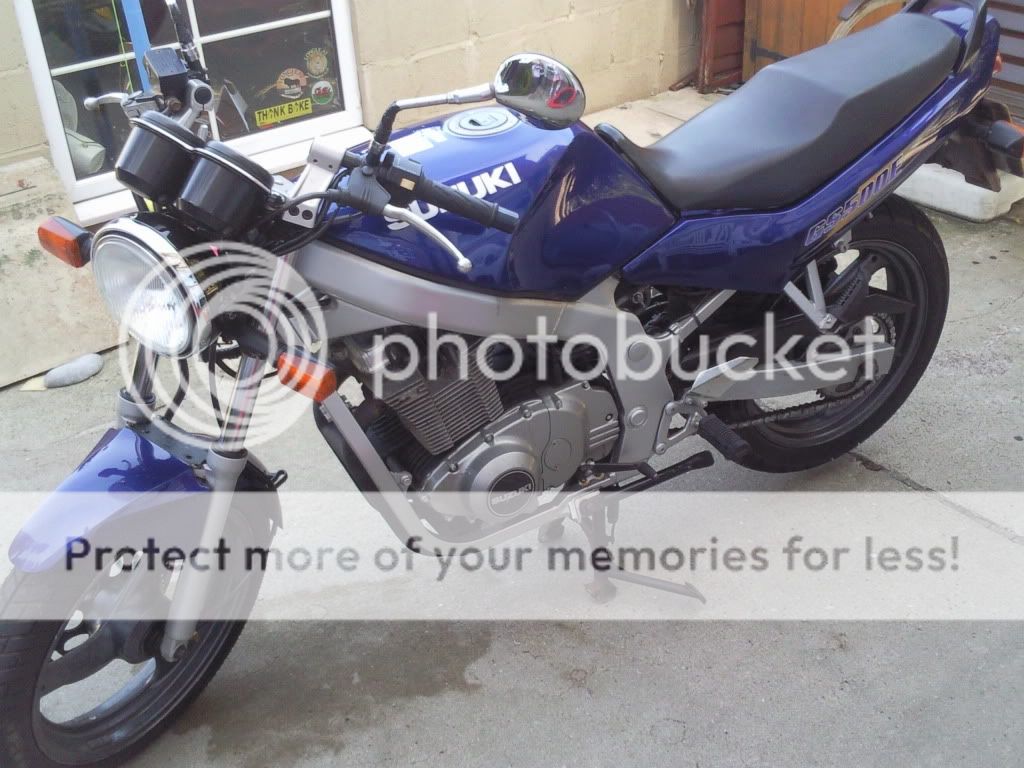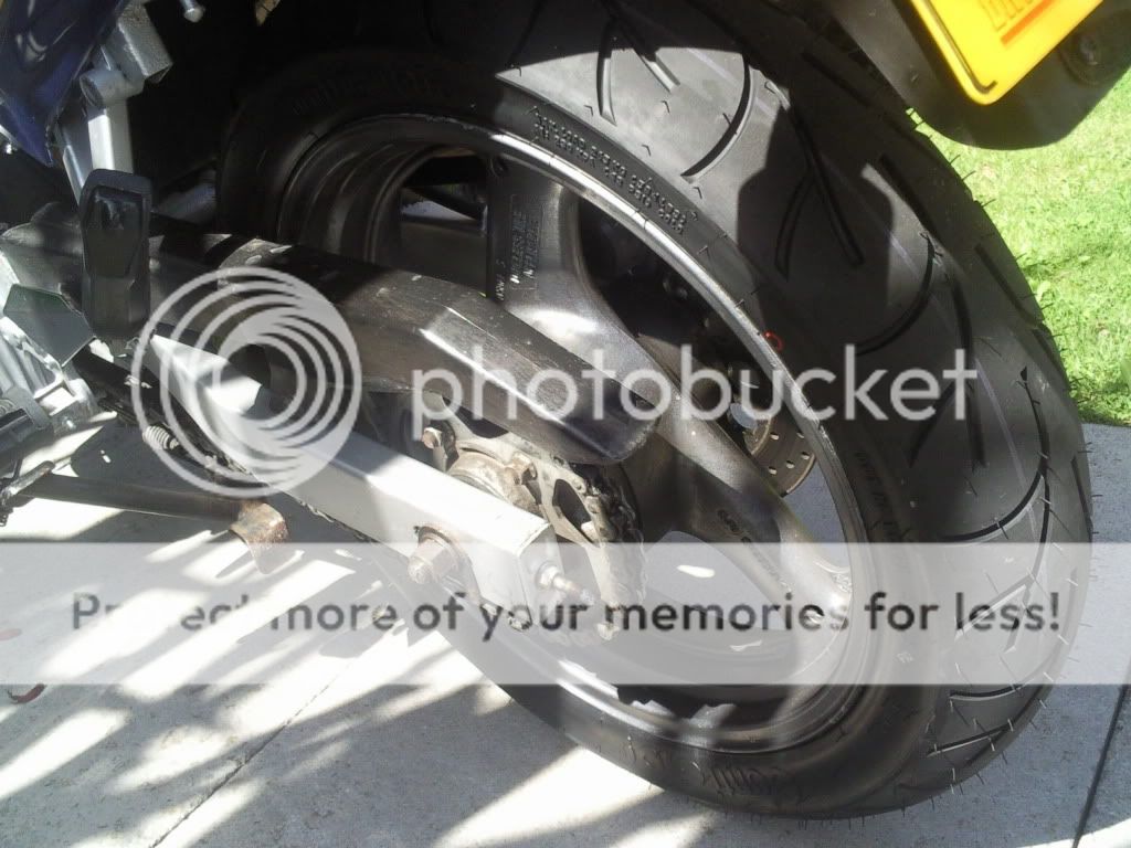 Metalforever - I wish you could double karma posts, yours is incredibly helpful! I don't know stacks about tyres, so just took my Dads advice on this one, not doing loads of research. I am going to change the shock for an SV 650 one, do they look nice? And apart from height, can you tell the difference?