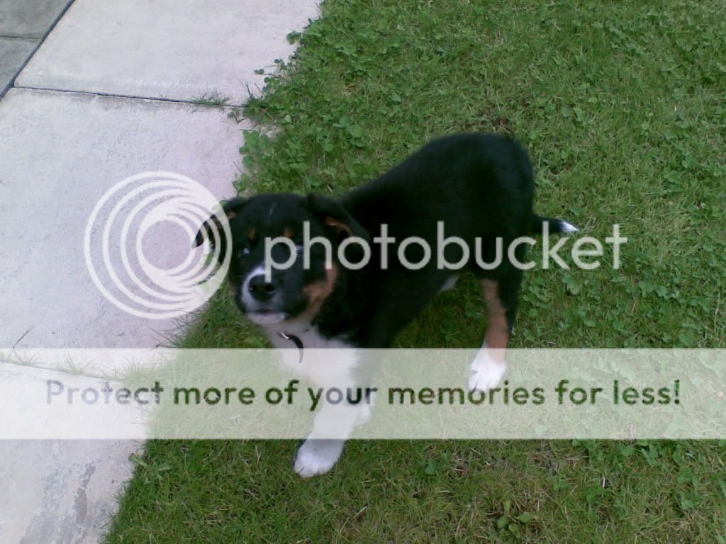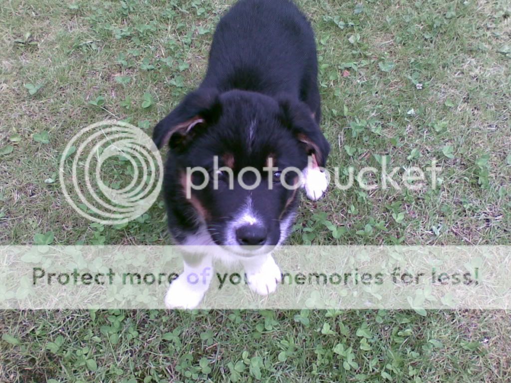 He's really inquisitive, pretty damn chunky, really friendly and gorgeous. I can't take him out yet as the vet can't innoculate him 'til Tuesday. Bought him from a farm, so I'm sure he'll keep me busy on walkies as mummy and daddy were both working sheep dogs.