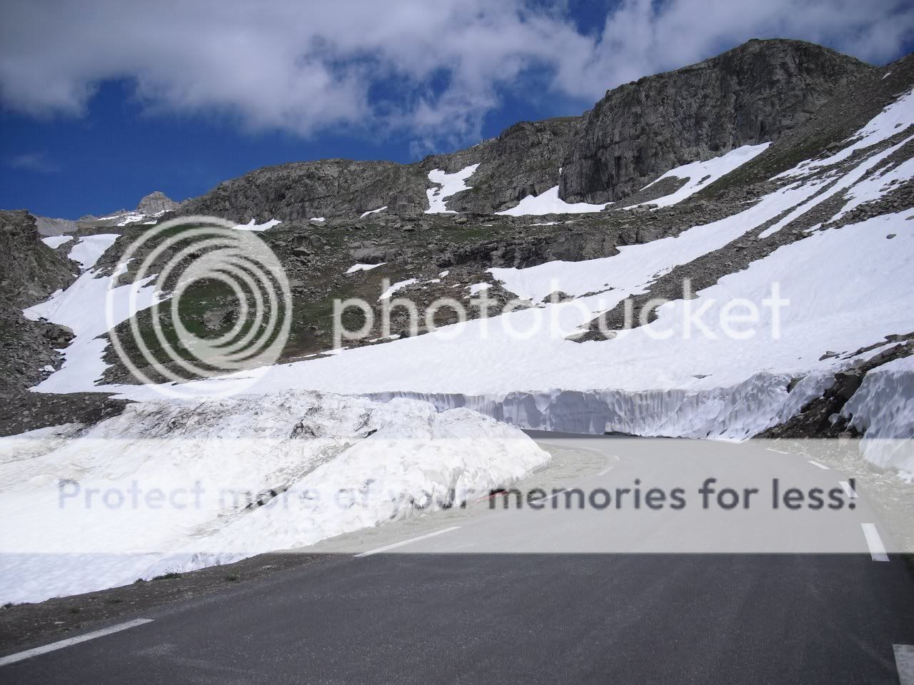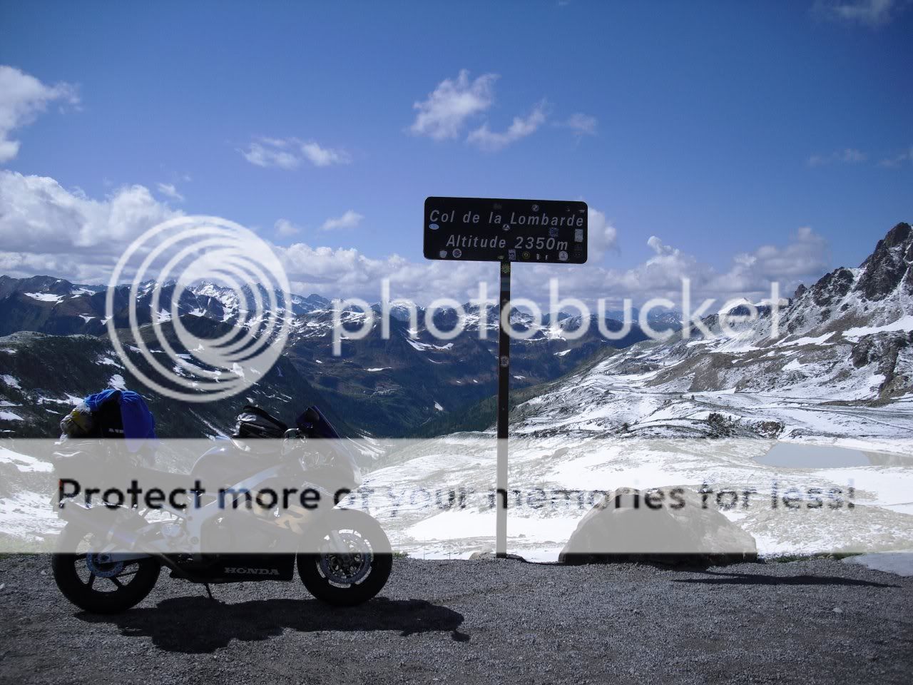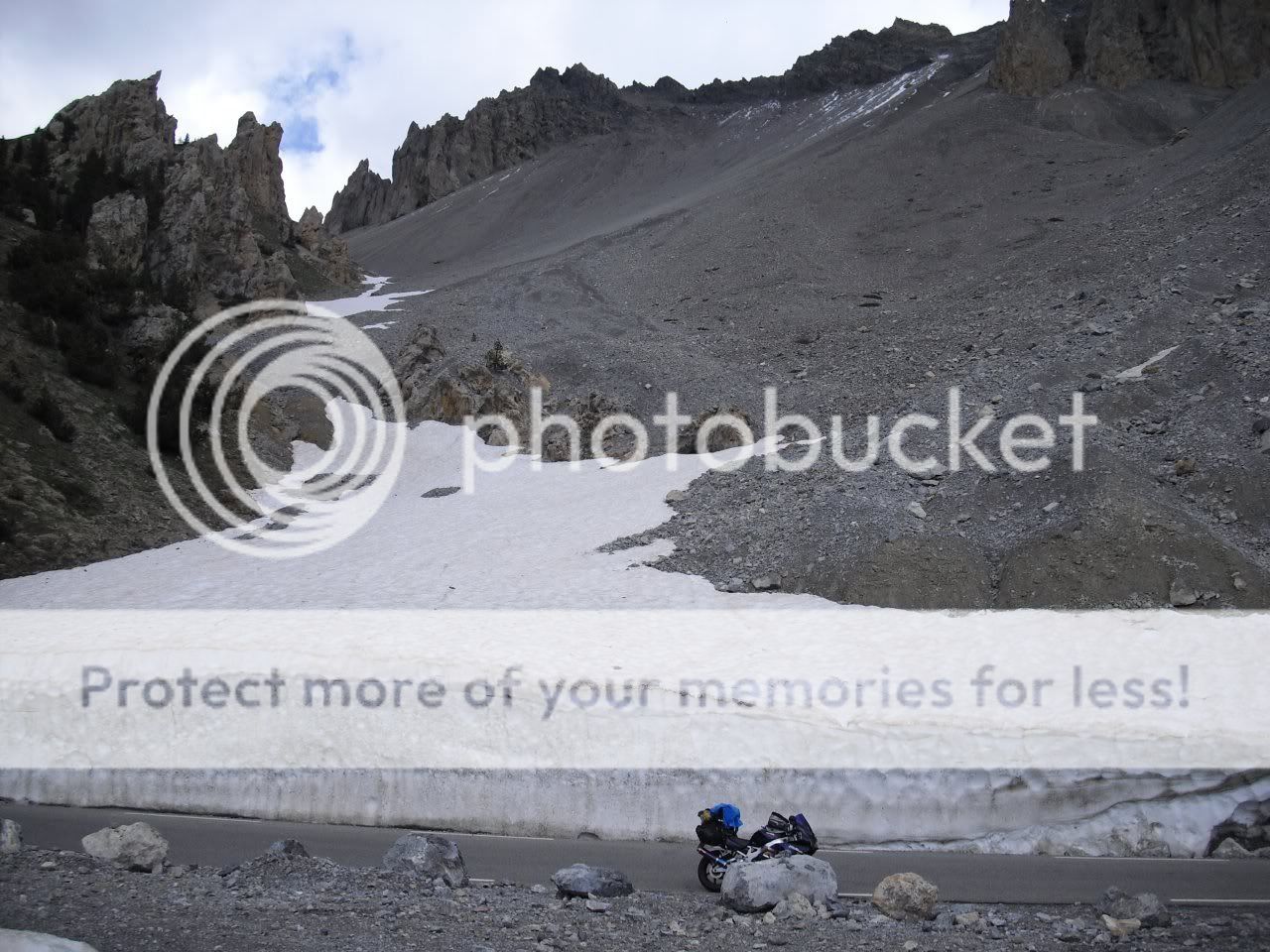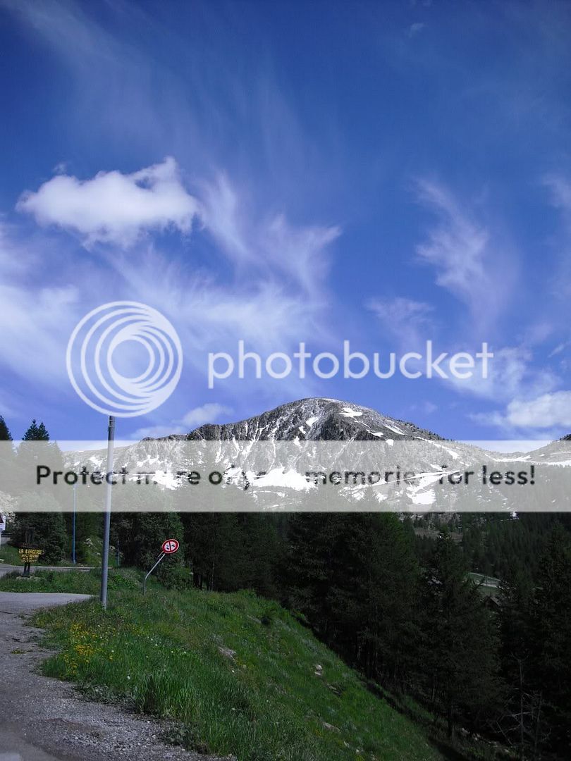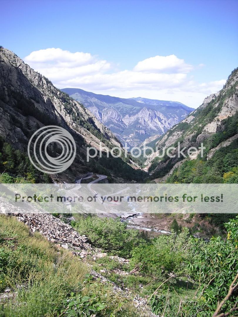 Woke up suprisingly to sunshine and blue skies, and dry everything, was expecting worse as it had rained and thundered all night. Got straight onto more mountain roads, up the Col d'izoard then down onto the road to Guillestre which was in a Canyon of sorts, very nice along there. Following the Alps route then up the col de vars and onto the Col de la Bonnette. From the col de la Bonnette I took the Col de la Lombarde via Isola down into Cuneo, Italy. The road once past the summit was still covered in inches of snow, I had to ride in the car tracks which was fun, brilliant views though as the pictures show, and hardly any traffic, quite a narrow road, not really one for riding fast as it's just not appropriate much like a lot of the roads I took.