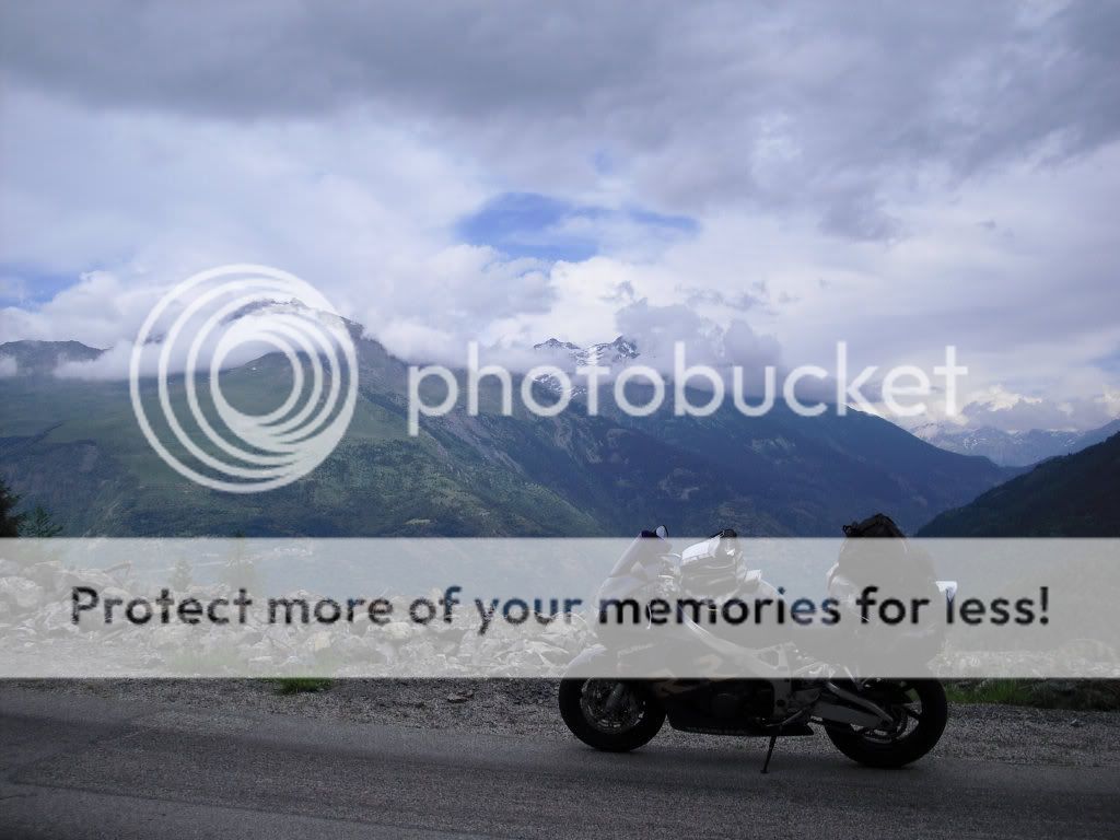 Jumped onto the motorways today to get back to Switzerland, up towards Milan via Alessandria and then on to Lake Como where I took a breather. From Como I headed up towards the San Bernadino Pass, taken from the Top Gear episode a couple of years ago, I was epecting an amazing road, instead it was very very short, but up at the top the scenery was quite unusual, once up into the mountains I hit more bad weather but i was above it once atop the pass it was still very windy though which made for some strange effects on the water, also nearly lost a glove off the edge of the road, very, very windy.