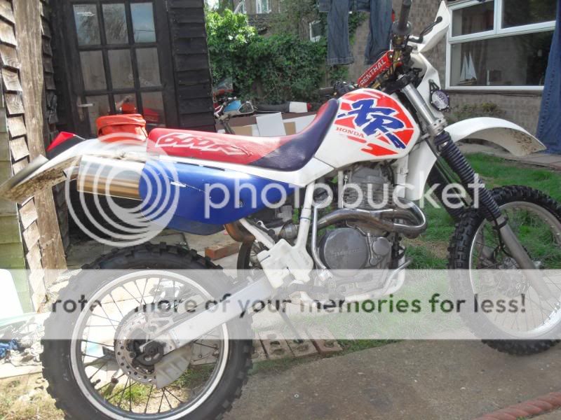 It's big loud and red, and is now sporting Diablos. XT engined. WP Suspension, Acerbis bodywork, Behr rims etc etc. 9000 kms (5k miles?)b FSH 02 plate.