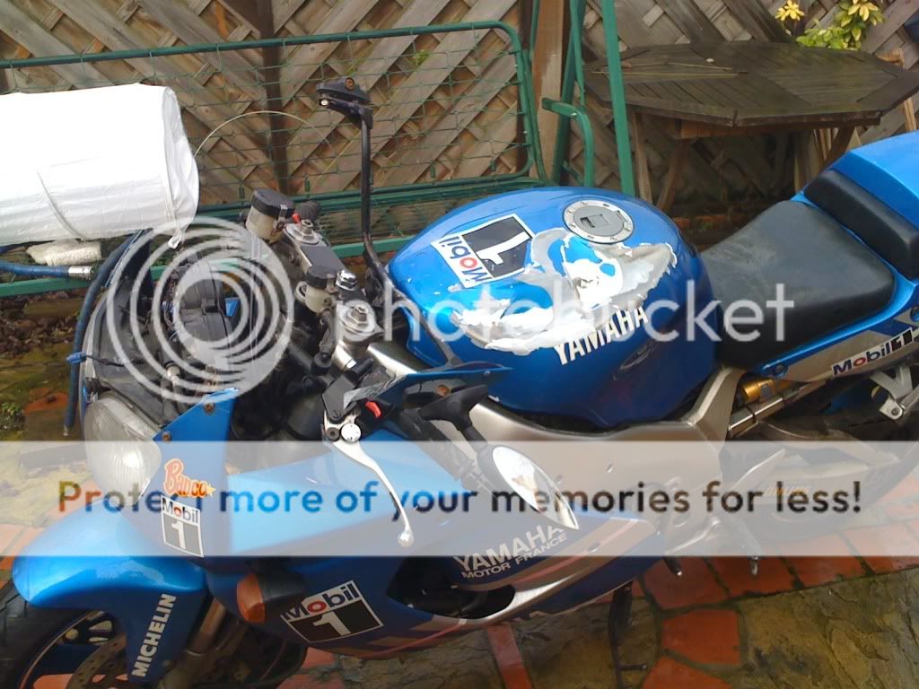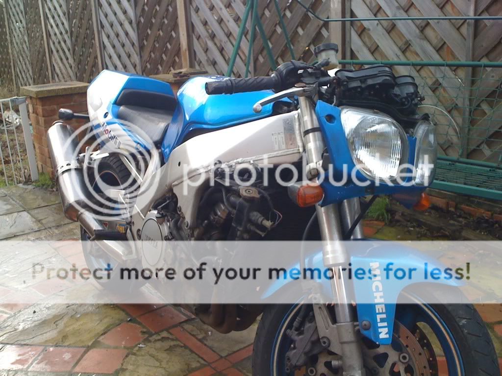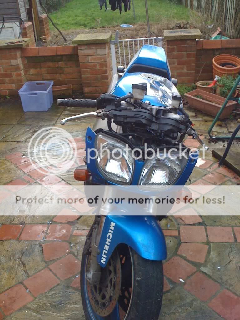 Well its all sorted now. The bike that is, fairing is all off, and the clocks/headlight/front indicators have been bodged back on. I'll get a picture in a bit.