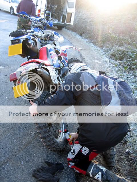 MikeJ drove up from the coast .... unloaded his bike ... hauled on all the armour and kit ... then realised the front inner tube was shredded and we had no tools to get the wheel off.